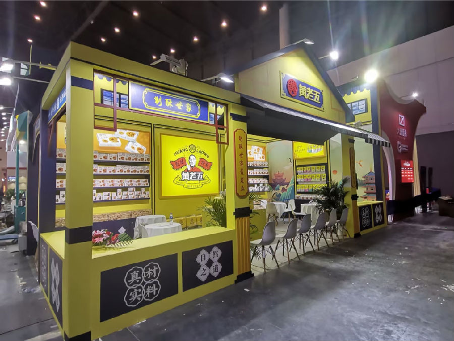 2021年第104屆全國糖酒會經過一年的沉淀,終于于2021年4月7日在成都西部國際博覽城盛大開幕!我們都知道2020年的春季糖酒會由于新冠疫情原因一波幾折,最后還是未能如愿舉辦!不過好在經過一年之后,國家和人民的共同努力之下,讓新冠疫情得以有效控制,至少在國內已經相對變得安全,所以像糖酒會這種全國大型展會才得以再次呈現!全國糖酒會素來就有天下第一展的名號!可見地位非同一般!本次展會規模依然盛大,參展商多達幾千,觀眾多達數萬,再次讓來自全國各地的朋友們見識到了成都春季糖酒會的盛況!黃老五是四川地道的花生酥知名品牌,也是非物質文化遺產之一,黃老五是家族第20代傳人,可想而知黃老五在花生酥行業可以說是領導級的存在!本次成都摩方展覽有幸再次與黃老五合作,為黃老五量身打造糖酒會西部博覽城的展臺,從設計到制作再到搭建,都是摩方展覽親力親為,最后呈現出來的效果也深得黃老五客戶的一致滿意!